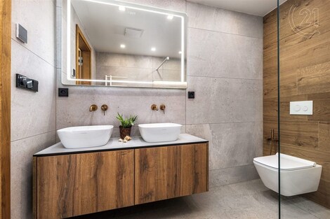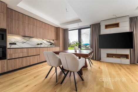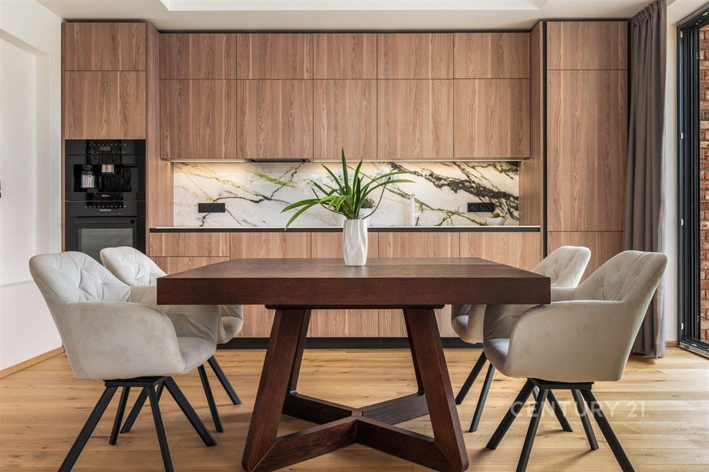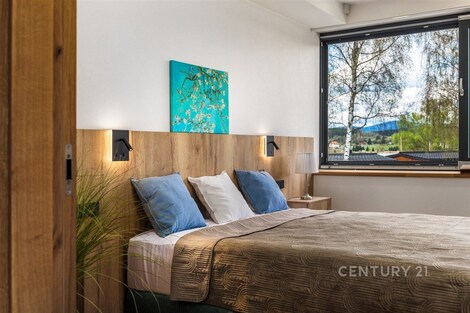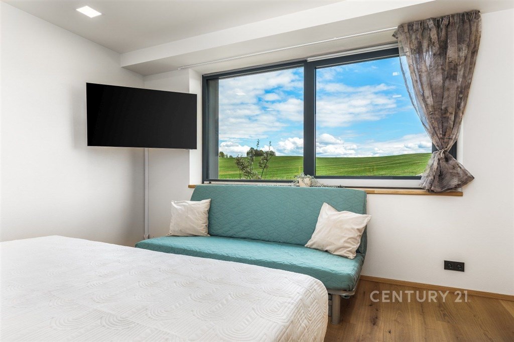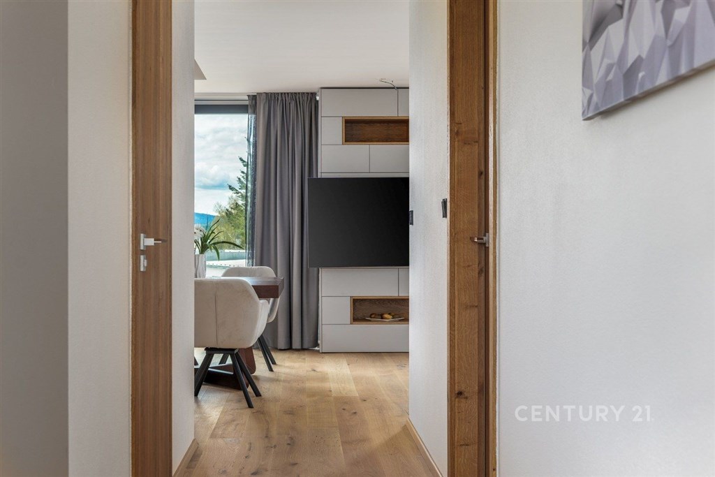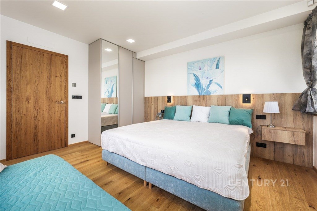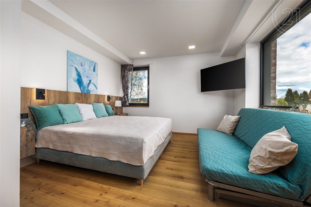 Exkluzivní nabídka. Dovolujeme si Vám nabídnout prodej luxusního apartmánu, polohou v atraktivní lokalitě chráněné krajinné oblasti Šumava, v Černé v Pošumaví. Apartmán je součástí projektu LakeSide Apartments Lipno, který byl dokončen v roce 2022 a poskytuje komfortní ubytování vícečlenné rodině a pod jeho návrhem je podepsán architekt ing. Petr Mužík. Apartmánu o dispozici 3+kk a podlahové ploše 99 m2 dominuje prostorný obývací pokoj s kuchyňským koutem a jídelnou, ze kterého je dvěma velkoplošnými francouzskými okny vstup na terasu (17 m2), ze které je výhled přímo na vodní nádrž Lipno. Kuchyňská linka je osazena spotřebiči Miele (indukční deska, trouba, mikrovlnná trouba, digestoř, lednice, mrazák a vestavěný kávovar). Apartmán dále disponuje dvěma ložnicemi, koupelnou (2 x umyvadlo, sprchový kout, WC), samostatným WC, předsíní a zádveřím. Pračka se sušičkou jsou zabudované do vestavěné skříně v předsíni, každý z pokojů je vybaven televizí. Příslušenstvím je sklepní kóje a garážové stání v suterénu budovy. Zabezpečení je mechanické (bezpečnostní vstupní dveře, okna jsou osazena venkovními žaluziemi a roletami) i elektronické (alarm s přípravou na připojení kamerového systému). V celém apartmánu byly použity vysoce kvalitní materiály, ať už se to týká podlah, obkladů, sanity, nábytku atd. Pro více informací nebo sjednání prohlídky kontaktujte makléře. Provozní náklady: záloha na služby a fond oprav: 4.707 Kč; + elektřina