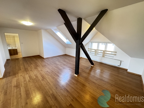 REALDOMUS vám zprostředkuje pronájem podkrovního bytu v loftovém stylu s otevřenou a vzdušnou dispozicí, situovaného ve širším centru Českých Budějovic, v ulici Jírovcova. Byt o podlahové ploše 67,55 m2 se nachází v podkroví bytového domu a nabízí moderní otevřený obytný prostor s kuchyňským koutem. Dispozice bytu odpovídá 2+kk, přičemž díky velkorysé ploše je možné prostor variabilně rozdělit nábytkem dle potřeb budoucího nájemníka. K bytu náleží prostorný sklep. Byt disponuje komfortní koupelnou s dostatkem prostoru, vybavenou vanou se sprchovou zástěnou, dvěma umyvadly a samostatným WC. Kuchyň je vybavena novým sporákem a novou lednicí. Ve všech oknech jsou instalovány žaluzie, ve střešních oknech navíc rolety. Vytápění bytu je řešeno centrálně - teplárnou. Byt je ve velmi dobrém stavu, plně připravený k nastěhování a k dispozici ihned. Lokalita: Ulice Jírovcova se nachází ve vyhledávané lokalitě širšího centra Českých Budějovic s výbornou dostupností do centra města i na městský okruh. V docházkové vzdálenosti je kompletní občanská vybavenost - obchody, restaurace, kavárny, zastávky MHD, lékařské služby i sportovní vyžití. Lokalita nabízí komfortní městské bydlení s dostatkem služeb v okolí. Výhodou je možnost zřízení trvalého bydliště a s tím spojená rezidenční parkovací karta. Nájemní podmínky: Nájemné: 14.000 Kč / měsíc Zálohy na energie: 4.500 Kč / měsíc Služby (úklid společných prostor): 500 Kč / měsíc Kauce (jistota): 20.000 Kč Rezervační poplatek: 15.000 Kč Byt je vhodný pro jednotlivce nebo pár, kteří hledají stylové bydlení s osobitým charakterem a výbornou dostupností centra města. Pro více informací nebo sjednání prohlídky kontaktujte realitního makléře REALDOMUS.
