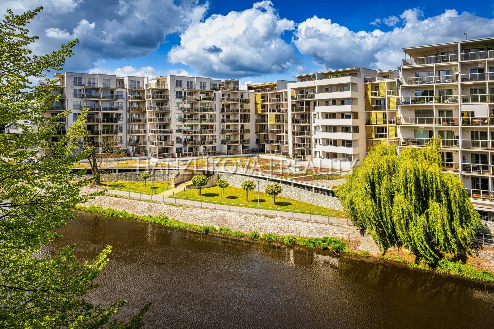 Nabízíme k pronájmu bytovou jednotku číslo B.5.02. Jedná se o byt 2+kk o výměře 52,55 m2 + terasa 9,91 m2, který se nachází v 6.NP rezidenčního komplexu DLOUHÁ LOUKA. Byt se skládá z: chodby, se šatnou, koupelny s toaletou, složnice a prostorného obývacího pokoje s kuchyňským koutem, ze kterého je přístup na terasu. Byt je orientovaný na východ s výhledem na řeku a na město. Byt je kompletně vybaven viz fotografie, kuchyně vč. spotřebičů (lednice, trouba, varná deska, digestoř). Dům je vybaven výtahem, videotelefonem, kabel. rozvody, internetem. V přízemí jsou umístěna parkovací stání a společné prostory - kolárna, kočárkárna. Parkovací stání v přízemí domu je možné pronajmout za úplatu 1.500,-Kč/měs. Ideální poloha v centru krajského města a přesto uprostřed zeleně vytváří z bytů na DLOUHÉ LOUCE Osudový domov. Vhodná orientace komplexu zajišťuje výhled na řeku Vltavu a historické centrum Českých Budějovic. Byt je k dispozici ihned.