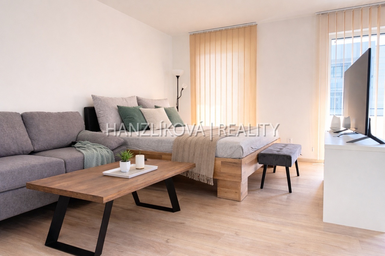 Exkluzivně nabízíme k pronájmu zcela nový, kompletně zařízený byt o dispozici 1+kk, který svou velikostí a uspořádáním působí spíše jako menší byt 2+kk. Byt se nachází ve 3. patře moderní novostavby v ulici Oskara Nedbala v Českých Budějovicích a nabízí celkovou plochu 50,7 m2 + terasu 12,6 m2 orientovanou do klidného vnitrobloku na východ. Dům je vybaven výtahem. Velkou výhodou je, že byt je plně vybavený a připravený k okamžitému nastěhování - stačí si přinést osobní věci a bydlet. Dispozice bytu: • prostorná vstupní chodba s vestavěnými skříněmi, botníkem a věšákem • koupelna se sprchovým koutem, WC a koupelnovým nábytkem • hlavní obytná místnost s kuchyňskou linkou včetně spotřebičů • kompletní vybavení - postel včetně matrací, křeslo, komoda a další nábytek • vstup na prostornou terasu s posezením, ideální na relax i práci z domova K bytu náleží vyhrazené garážové stání v suterénu domu - velký komfort bez hledání parkování. Byt je vybaven moderním systémem Loxone, který zajišťuje chytré ovládání topení, přehled o spotřebě energií i bezpečný vstup do domu (videotelefon, kódová klávesnice). Dům se nachází v oblíbené části širšího centra města s výbornou dostupností a kompletní občanskou vybaveností. V docházkové vzdálenosti je také nový relaxační park. Ideální pro jednotlivce nebo pár, kteří hledají moderní, prostorné a plně vybavené bydlení bez starostí. nájemné 13.000,- / měs garážové stání 1.000,- Kč / měs + zálohy na služby K nastěhování ihned.