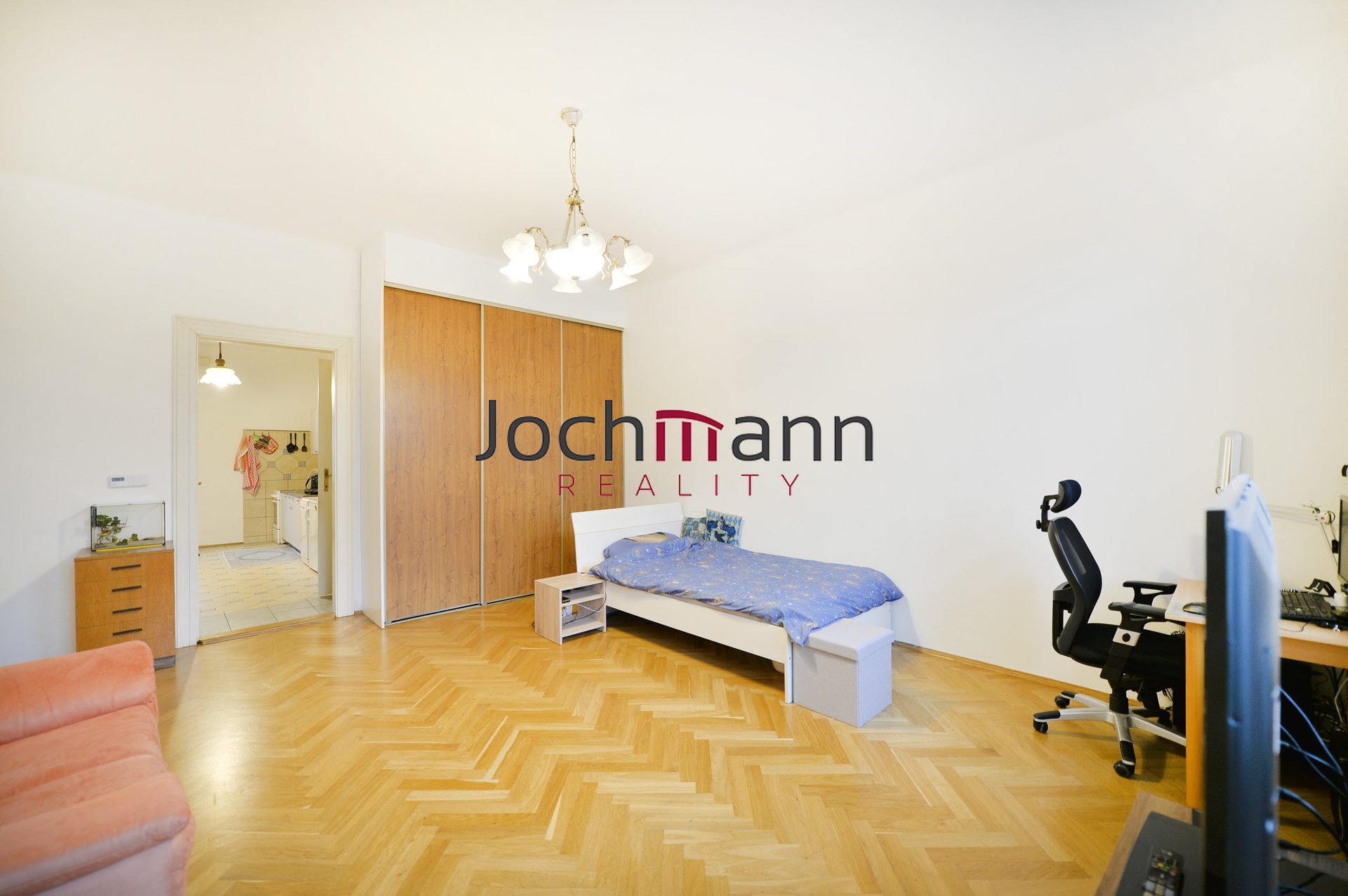 Prostorný byt osobitého stylu nabízí komfortní bydlení na dobré adrese. Dispozice bytu nabízí velkorysou vstupní místnost, kde na konci je vstup do koupelny se sprchovým koutem a toaletou. Dále je zde prostorná kuchyň s kuchyňskou linkou, lednicí s mrazákem, myčkou, mikrovlnnou troubou a elektrickou troubou s varnou deskou. Kuchyň nabízí dostatek prostoru k jídelní části. Z kuchyně je vstup do obývací místnosti s vestavěnou skříní, kde na první pohled zaujmou elegantní parkety. V blízkosti bytu se nachází mateřská škola, základní škola, MHD, poliklinika JIH, cyklostezka apod, v docházkové vzdálenosti pak veškerá občanská vybavenost. K nemovitosti náleží klidná, uzavřená zahrada, která je orientována do vnitrobloku a nabízí prostor pro odpočinek a klidné posezení. K bytu patří také sklep. K dispozici od 01.07.2026. Doporučujeme!