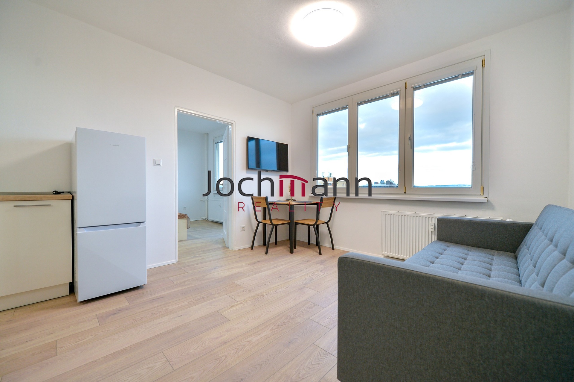Nově zrekonstruovaný, kompletně vybavený byt s balkonem v těsné blízkosti Jihočeské university a výhledem na Černou věž je situován v klidném, zatepleném domě s výtahem. Dispozice bytu nabízí vstupní chodbu s botníkem, nadstandardní koupelnu s velkoformátovými obklady, metr širokým sprchovým koutem s termostatickou baterií Grohe, LED zrcadlem a pračkou. Hlavní obytná místnost je vybavena na míru vyrobenou kuchyňskou linkou vč. myčky nádobí, horkovzdušné trouby a sklokeramické varné desky, dále pak rozkládací pohovkou, jídelním stolem s židlemi a LED televizí. Ložnici dominuje prostorná šatní skříň, manželská postel a pracovní kout. Příjemný je pak balkon s výhledem na město. Byt byl kompletně zrekonstruován včetně rozvodů elektřiny, omítek, vinylových podlah a dveří, je osazen výlučně LED svítidly. Součástí bytu je sklepní kóje, dále k dispozici společná kolárna. V blízkosti veškerá občanská vybavenost vč. zastávky MHD. K dispozici po dohodě. Doporučujeme.